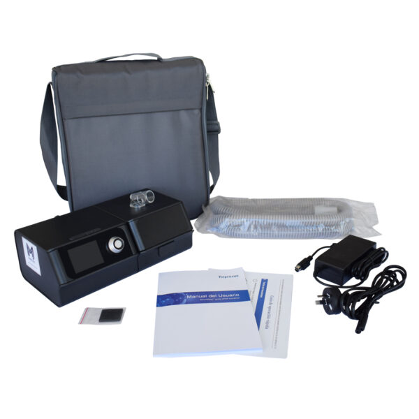 BPAP TOPSON es un BiPAP Bilevel / BiPAP tipo ST/T/FR/CPAP (Frecuencia Respiratoria) que ofrece una amplia gama de tecnologías superiores enfocados en el paciente, para crear un sistema de terapia del sueño verdaderamente inteligente, preciso y silencioso. Fácil manejo : Pantalla táctil a color de 3 pulgadas y un menú de fácil uso. Climatización : El Topson BPAP 25T incluye un Termo-humidificador, el grado de humidificación es ajustable para alcanzar la temperatura ideal del aire, lo que haría que su uso sea más cómodo. Funcionamiento silencioso : el nivel de ruido es menor de 28 dBA, siendo uno de los dispositivos de menor ruido. El liviano y pequeño : sólo 1,5 kg de diseño ligero y compacto, fácil para viajes.